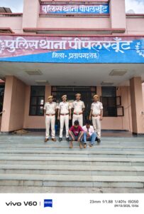 पीपलखूंट थाना अधिकारी जयेश पाटीदार ने बताया कि मोबाइल के जरिए सूचना मिली कि नलवा केला मेला मार्ग पर दो व्यक्ति आने जाने वाले राहगीरों को परेशान कर रहे हैं और उनके साथ लड़ाई झगड़ा कर रहे हैं, इस पर पुलिस टीम तत्काल मौके पर पहुंची तो वहां दो व्यक्ति लोगों के साथ झगड़ा कर रहे थे,इस पर पुलिस ने दोनों को शांति भंग के आरोप में गिरफ्तार कर लिया, पूछताछ में दोनों ने अपने नाम बांसवाड़ा निवासी सूरज मीणा और सुनील चरपोटा बताएं, पुलिस ने संबंधित थानों में उनके अपराध के विषय में जानकारी जुटाई तो पता लगा कि सूरज मीणा पर संपत्ति संबंधी प्रकरण दर्ज है और बांसवाड़ा पुलिस ने उस पर 10 हजार रुपए का इनाम घोषित कर रखा है, इसी तरह सुनील चरपोटा पर भी हत्या और चोरी का प्रकरण दर्ज है जिसमें वह वांछित चल रहा है, दोनों को अब बांसवाड़ा पुलिस के सुपुर्द किया जाएगा